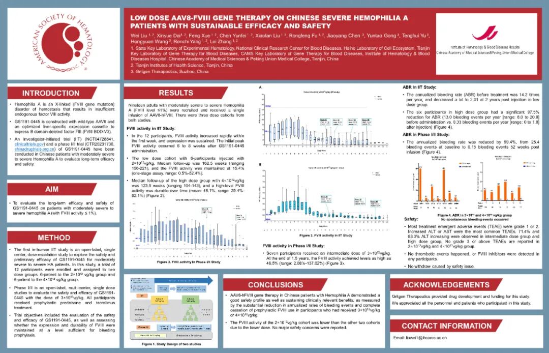 中国学者表现卓越,共有近百篇研究入选口头报告(占全球口头报告总数12%),其中中青年学者占比超过60%,中国学者论文发表数量居全球第二,仅次于美国; “中国之夜”主题活动顺利举行,逾150位华人专家与学者共聚一堂,集中展示包括血友病A基因治疗产品GS1191-0445在内的多个中国原研药物的领先进展,吸引超过300位国际学者参与交流; 在创新药物领域中国成果显著,华毅乐健GS1191-0445注射液等多个差异化血液治疗产品披露最新临床试验数据,涵盖白血病、淋巴瘤、骨髓瘤等疾病的突破性治疗方法; 中国主导的国际多中心研究首次于ASH主会场进行口头报告,体现了中国在血液学领域从“参与”到“引领”的重要转变,显著提升了中国在国际血液学界的影响力。